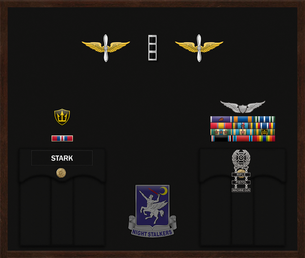 Air Medal Warrant Officer 1 Stark The Secretary of the Army has reposed special trust and confidence in your patriotism, valor, fidelity and professional excellence. In view of these qualities, your demonstrated leadership potential, and dedicated service to the United States Army and the unit, you are, therefore, awarded the Air Medal. Awarded: Oct 5, 2025 Signed, Task Force Headquarters CO/XO |