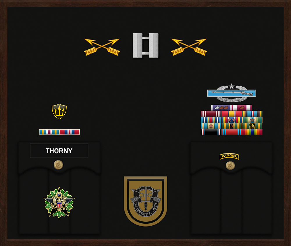 Sergeant First Class Thorny The Secretary of the Army has reposed special trust and confidence in your patriotism, valor, fidelity and professional excellence. In view of these qualities, your demonstrated leadership potential, and dedicated service to the United States Army and the unit, you are, therefore, awarded the . Awarded: Signed, Task Force Headquarters CO/XO