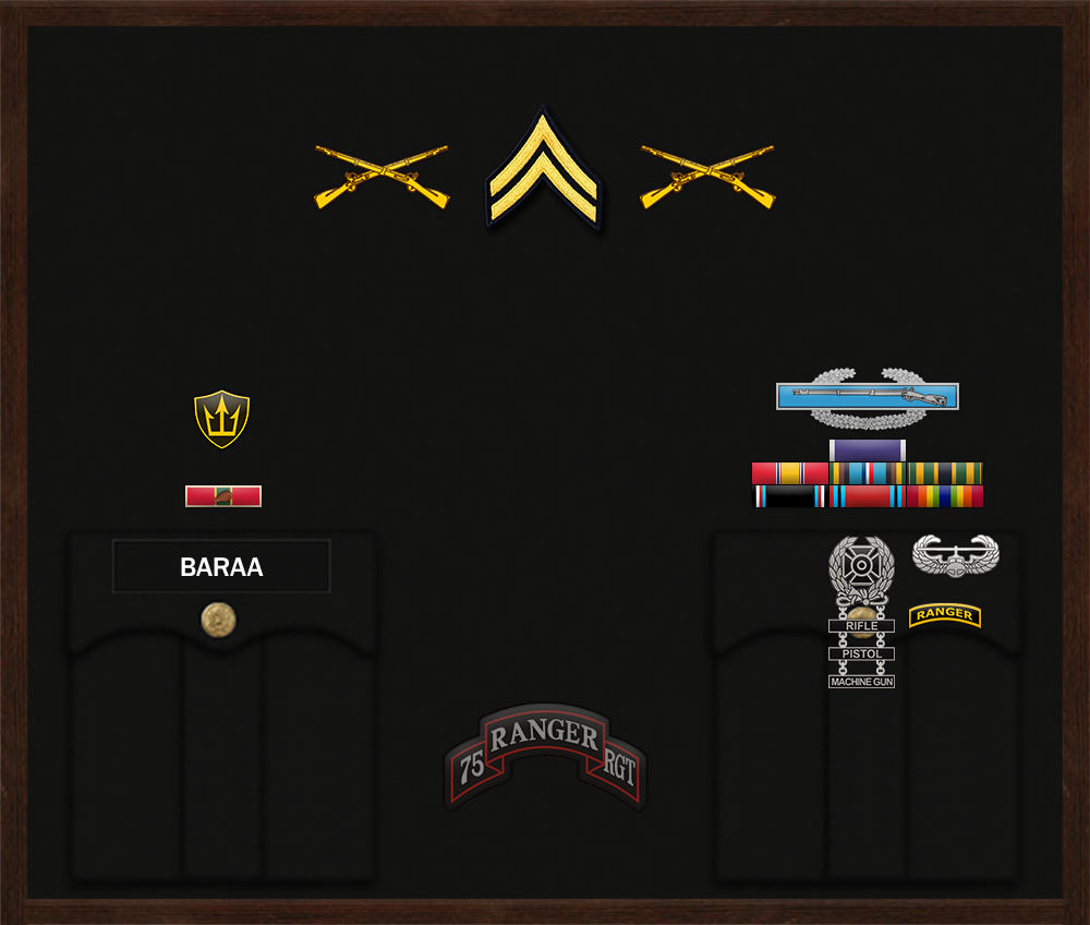 Combat Infantryman Badge (CIB1) Specialist Baraa The Secretary of the Army has reposed special trust and confidence in your patriotism, valor, fidelity and professional excellence. In view of these qualities, your demonstrated leadership potential, and dedicated service to the United States Army and the unit, you are, therefore, awarded the Combat Infantryman Badge (CIB1). Awarded: Oct 5, 2025 Signed, Task Force Headquarters CO/XO |
