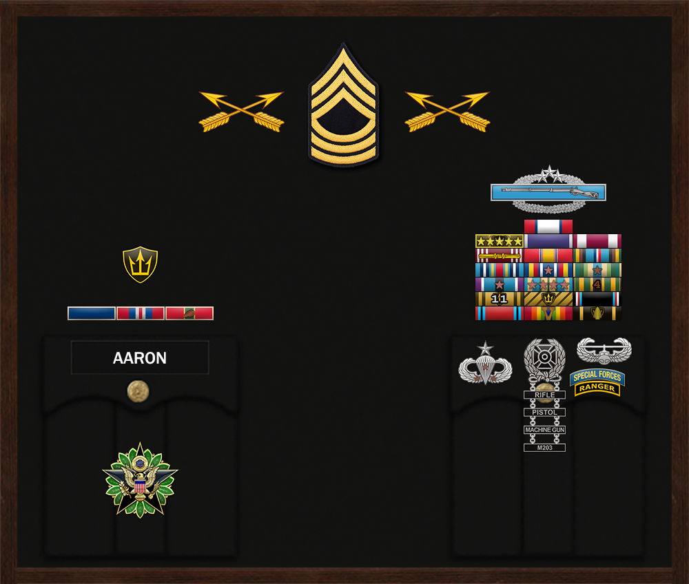 Defense Superior Service Medal Master Sergeant Aaron The Secretary of the Army has reposed special trust and confidence in your patriotism, valor, fidelity and professional excellence. In view of these qualities, your demonstrated leadership potential, and dedicated service to the United States Army and the unit, you are, therefore, awarded the Defense Superior Service Medal. Awarded: Dec 20, 2025 Signed, Task Force Headquarters CO/XO |