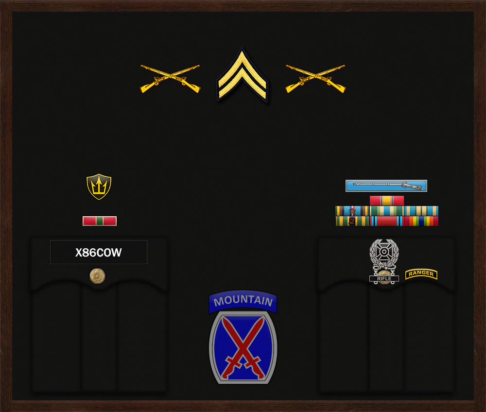 Ranger Tab Specialist x86cow The Secretary of the Army has reposed special trust and confidence in your patriotism, valor, fidelity and professional excellence. In view of these qualities, your demonstrated leadership potential, and dedicated service to the United States Army and the unit, you are, therefore, awarded the Ranger Tab. Awarded: Jul 22, 2025 Signed, Task Force Headquarters CO/XO |
