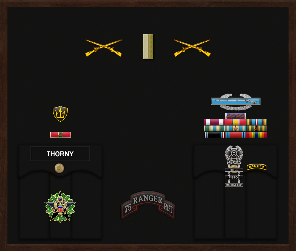 First Lieutenant Thorny The Secretary of the Army has reposed special trust and confidence in your patriotism, valor, fidelity and professional excellence. In view of these qualities, your demonstrated leadership potential, and dedicated service to the United States Army and the unit, you are, therefore, awarded the . Awarded: Signed, Task Force Headquarters CO/XO