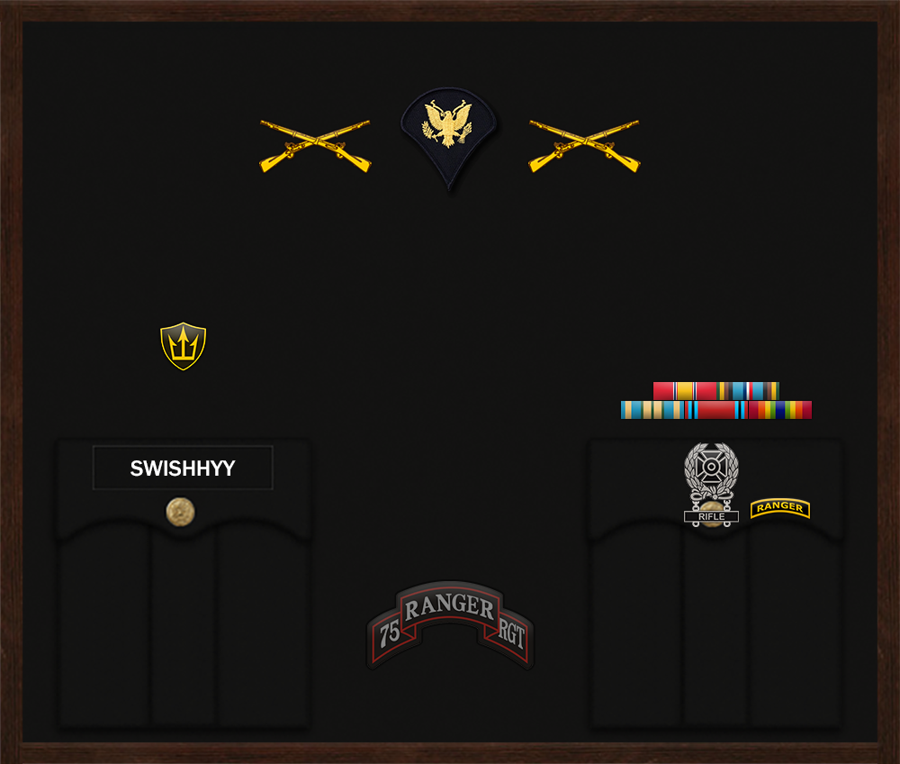 Ranger Tab Private First Class Swishhyy The Secretary of the Army has reposed special trust and confidence in your patriotism, valor, fidelity and professional excellence. In view of these qualities, your demonstrated leadership potential, and dedicated service to the United States Army and the unit, you are, therefore, awarded the Ranger Tab. Awarded: Oct 5, 2025 Signed, Task Force Headquarters CO/XO |