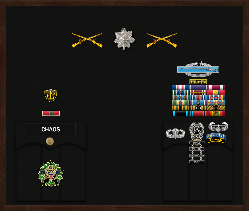 Combat Infantryman Badge (CIB2) Major Chaos The Secretary of the Army has reposed special trust and confidence in your patriotism, valor, fidelity and professional excellence. In view of these qualities, your demonstrated leadership potential, and dedicated service to the United States Army and the unit, you are, therefore, awarded the Combat Infantryman Badge (CIB2). Awarded: Oct 5, 2025 Signed, Task Force Headquarters CO/XO |